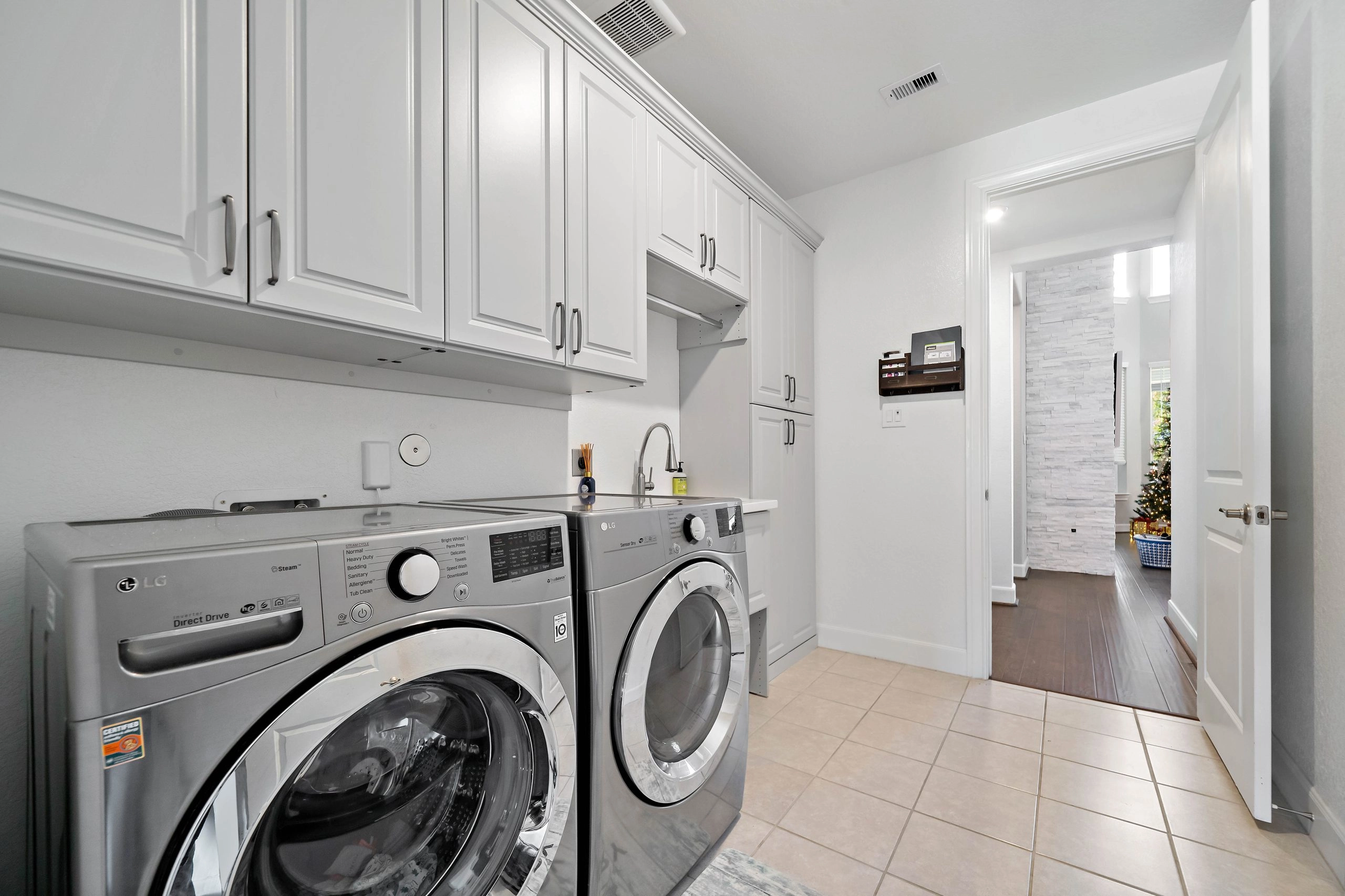 Streamlined cabinetry and layouts that simplify routines, reduce clutter, and create a functional laundry area.